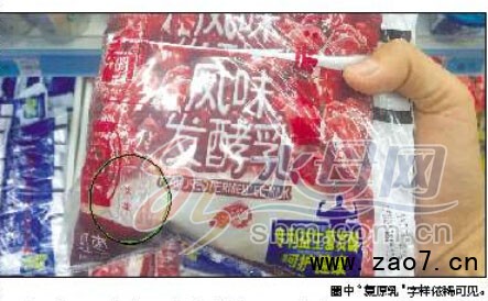 昨天上午,记者在大润发超市奶品柜台处看到,光明牌红枣口味“风味发酵乳”仍在销售,包装袋上的“复原乳”字样为透明白色字体,十分不明显。除了红枣口味,光明牌原味风味发酵乳也为“复原乳”,标注需仔细辨认。