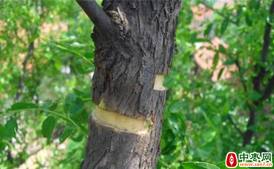 环剥时间以盛花初期为宜,应隔年进行。具体方法是:第一次在离地面30厘米处的主干上,先将树干老皮刮掉一圈,宽约1厘米,然后进行环剥。环剥应掌握“壮树重剥,弱树轻剥”的原则,壮树一般环剥口宽度为0.6-0.7厘米,弱树为0.3-0.4厘米,隔年后在距上次环剥处以上3-5厘米处再行环剥,依次沿主干逐渐向上递升。